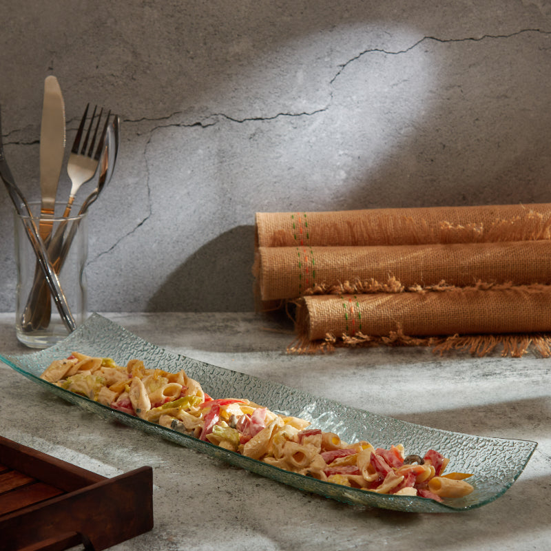 [ Product Specifications ]- The platter measures 46 cm length, 11.5 cm width & Height 4 cm comes in a 1 piece platter with boat shape. The glass gives the platter's bottom a natural appearance and feel. These designer servers are a great gifting product for all occasions.