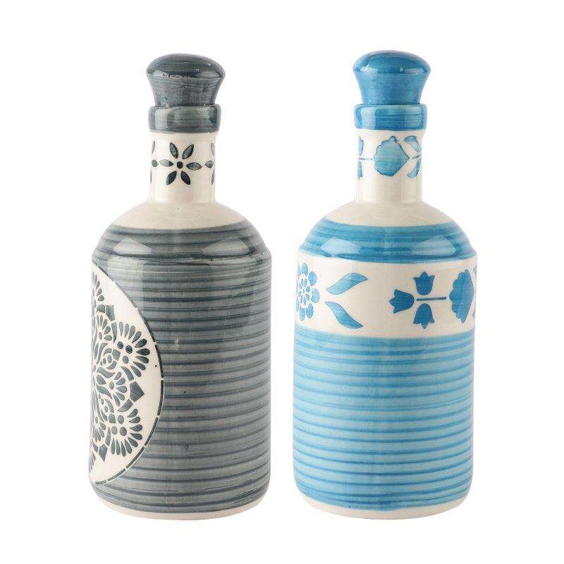 Ceramic Blue Floral Oil Dispenser | Set of 2 | 950ml | Multiple designs