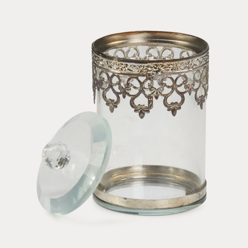 The Jar Is Made Of Glass With Crystal Lid, Covered With A A Beautiful Design Of German Silver On Top.