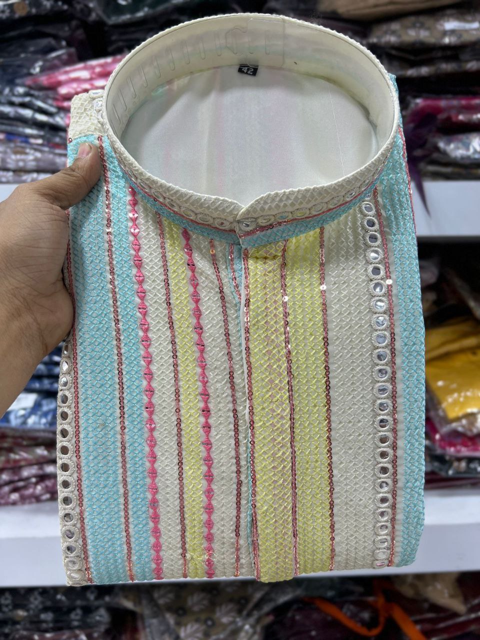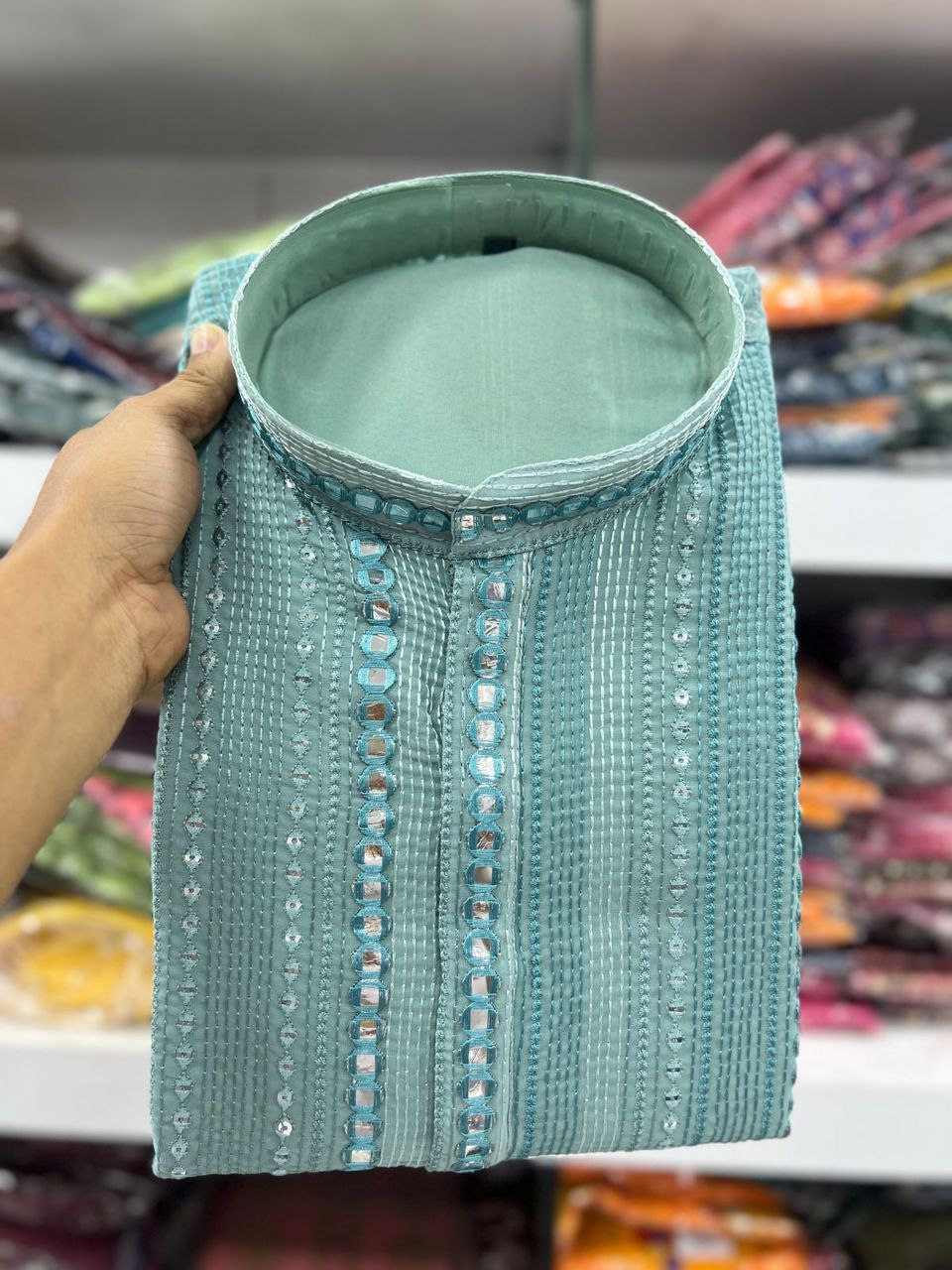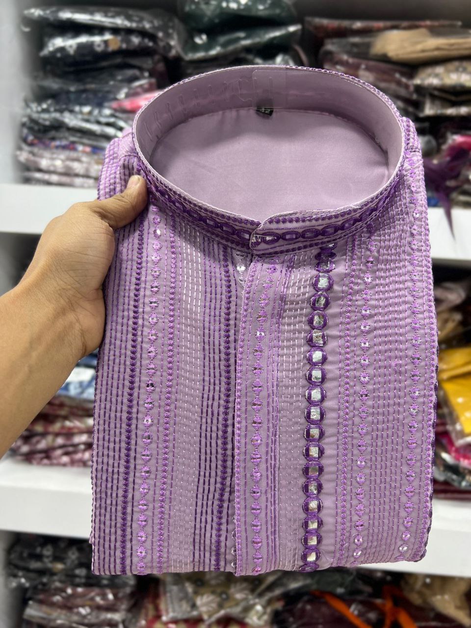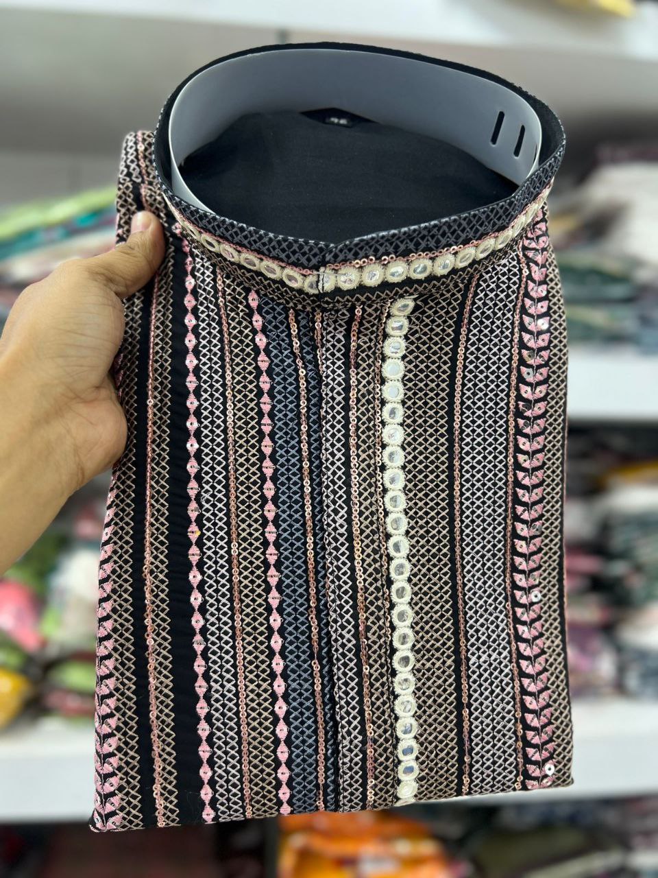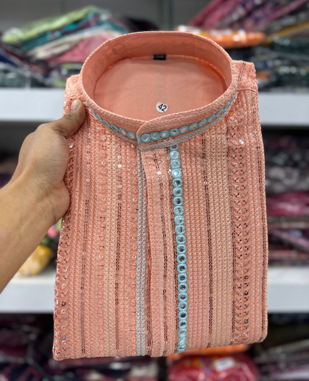 Men\s Heavy Georgette With Heavy Embroidery Work Kurta Pajama Set
