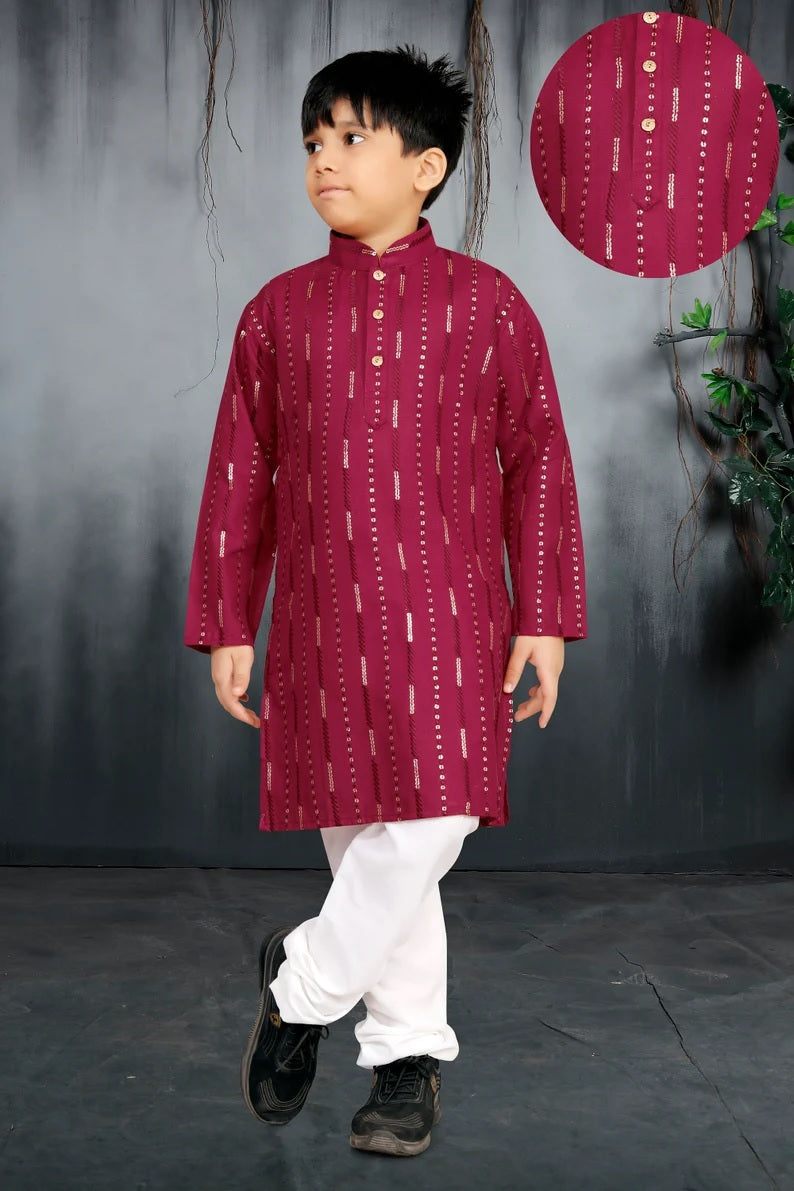 Soft Cotton With Embroidery Sequence Kurta Pajama Combo Set